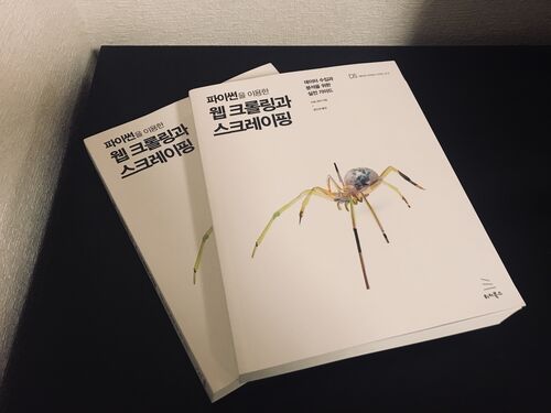 表紙のクモは光沢処理されてて綺麗です。 https://wikibook.co.kr/python-for-web-scraping/ 原書では日本のWebサイトを多く扱っているので、翻訳して大丈夫なのかと勝手に心配していましたが、韓国のサイトに置き換えられていました。他にも自然言語処理でM…